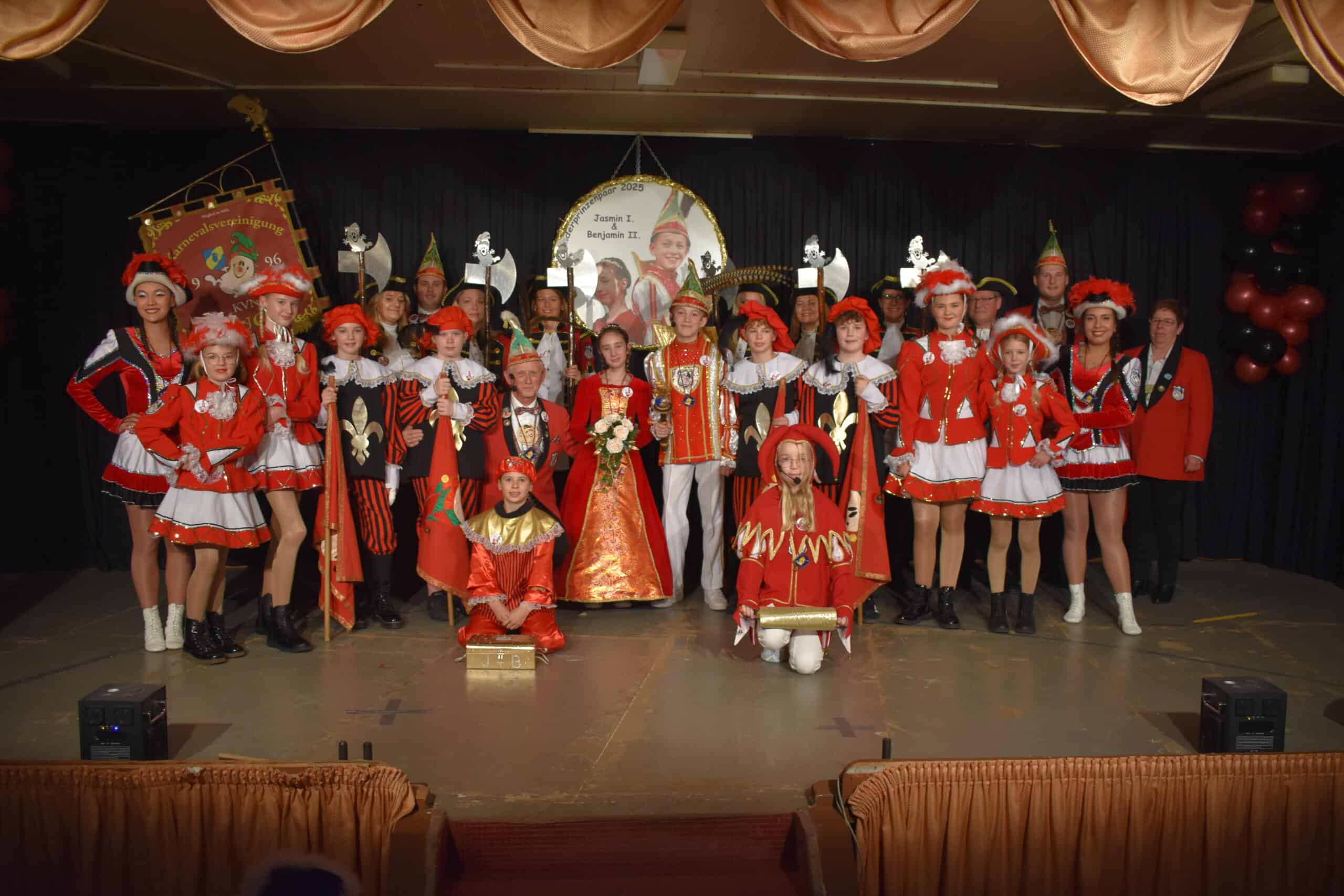 mit unserem Gefolge Till Leonie, Schatzmeister Finn, den Pagen Emma, Leonie, Florian und Marlon sowie den Gardemädchen Emilia, Elli, Luisa und Mina.